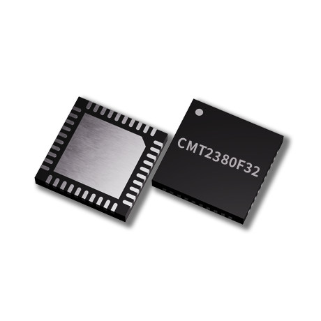 CMT2380F32集成了32位Cortex-M0+ CPU内核和一颗超低功耗射频收发器,是一款高性能、超低功耗、适用于127至1020 MHz无线应用的(G)FSK、(G)MSK 和OOK射频收发器MCU。CMT2380F32工作于1.8至3.6V供电电压,支持高达+20dBm 的发射功率及-121dBm的接收灵敏度,相应消耗72mA的发射电流和8.5mA的接收电流。该器件集成了丰富的外设,支持标准的UART、I2C和SPI接口,提供最多16个通用IO,支持内部高速、低速低功耗RC振荡器和32.768 kHz外部晶体振荡器,支持多种数据包格式及编解码方式、至多 64-byte Tx/Rx FIFO、功能丰富的射频GPIO、多种低功耗运行模式和快速启动机制、高精度RSSI、手动快速跳频和多通道输入12位高速SAR ADC等。CMT2380F32采用QFN40脚5x5封装,非常适合体积小巧、功耗考究的物联网应用。
