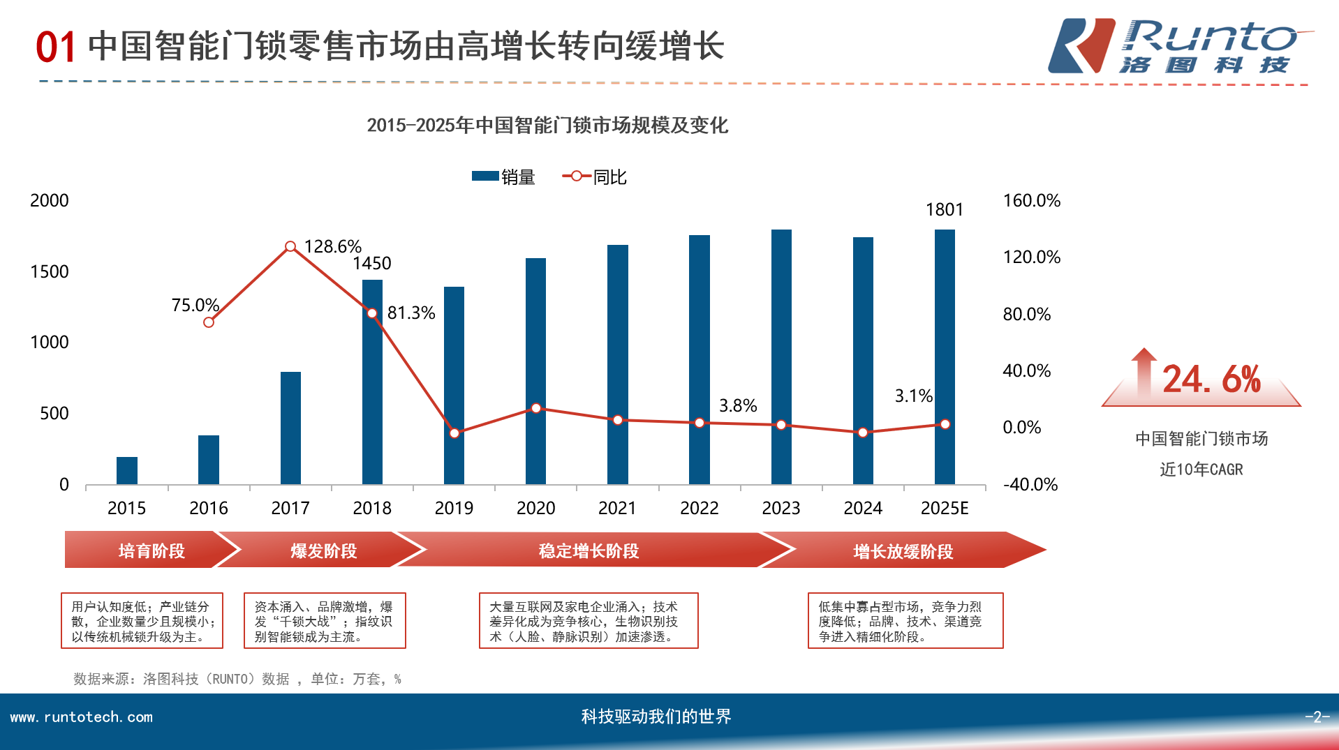 近期,在2025中国(温州)国际五金、智能锁具展览会期间,行业研究机构洛图科技(RUNTO)方面指出,在2025年,预计中国智能门锁全渠道的销量为1801万套,同比增长3.1%。随着物联网、人工智能等技术的不断成熟,智能门锁行业仍然具有更加广阔的发展空间。