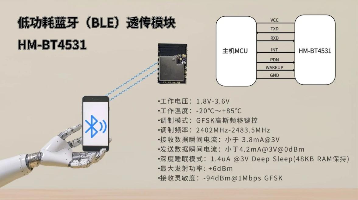 例如,银河galaxy微自主研发的HM-BT4531就是一款通过BQB认证,通过FCC/CE/IC/SRRC认证,采用智能干扰消除技术,可优化蓝牙连接稳定性,在复杂环境下实现更为可靠的无线连接的高性能BLE模块。
