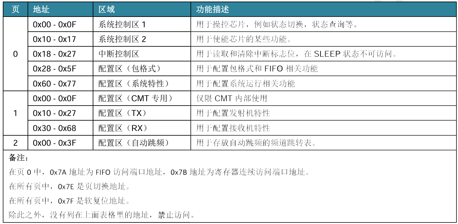 CMT2310A寄存器区域划分表