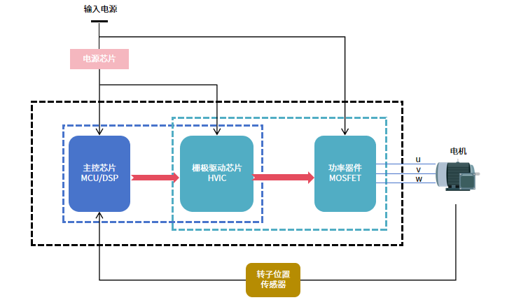 在传统电机的控制链路方案中,由于MCU/DSP等控制芯片输出的信号功率较小,无法直接驱动功率较大的功率器件。而栅极驱动芯片具有功率放大的功能,它可以将控制芯片输出的微弱信号进行放大,为功率器件的栅极提供足够的驱动电流和电压,确保功率器件能够正常工作。同时,栅极驱动芯片还可以对输入的控制信号进行滤波、整形等调理操作,去除信号中的噪声和毛刺,使驱动信号更加稳定和精确。