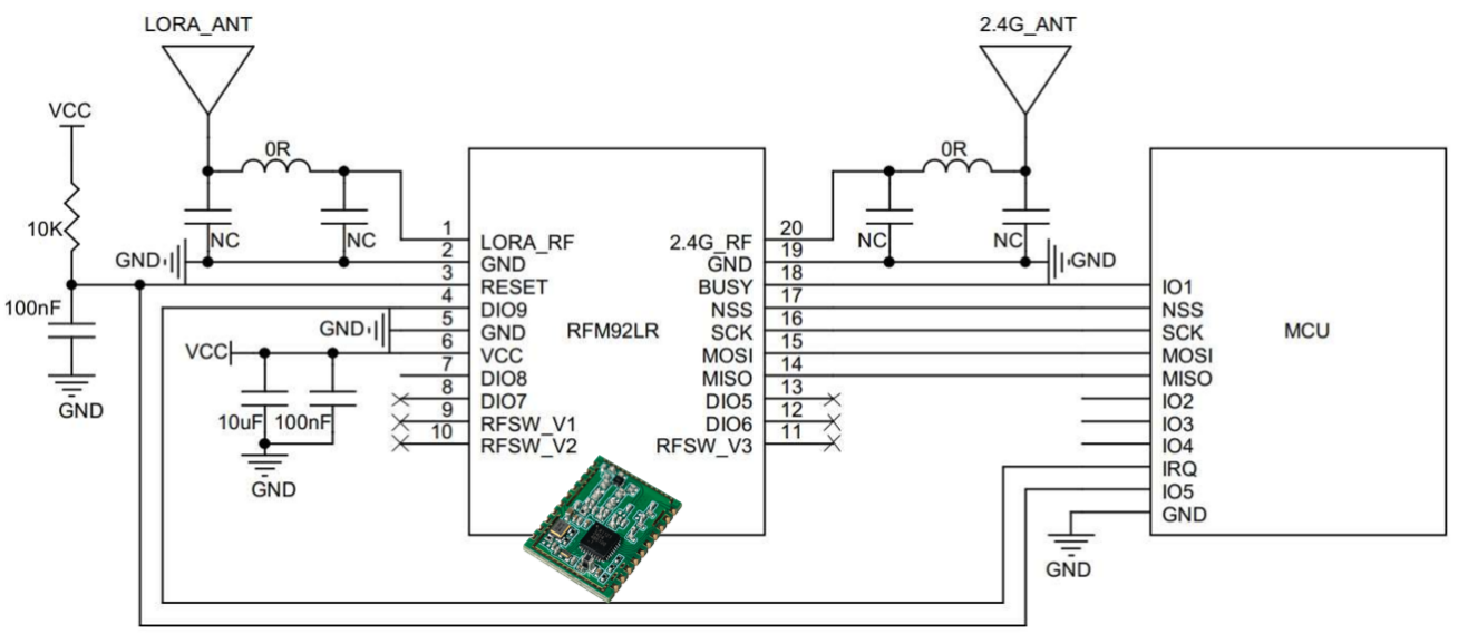 在硬件设计方面,RFM92LR内置 32MHz无源晶振,确保了时钟信号的稳定输出,为模块的正常运行提供了可靠的时钟基准。RFM92LR还采用了Sub-GHz/2.4GHz双天线接口设计,方便用户根据实际应用场景和需求,灵活选择使用 Sub-GHz 频段或 2.4GHz 频段进行通信。