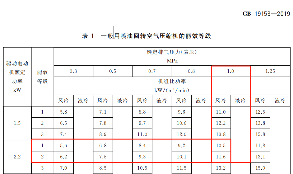 *GB 19153-2019 容积式空气压缩机能效限定值及能效等级(部分)